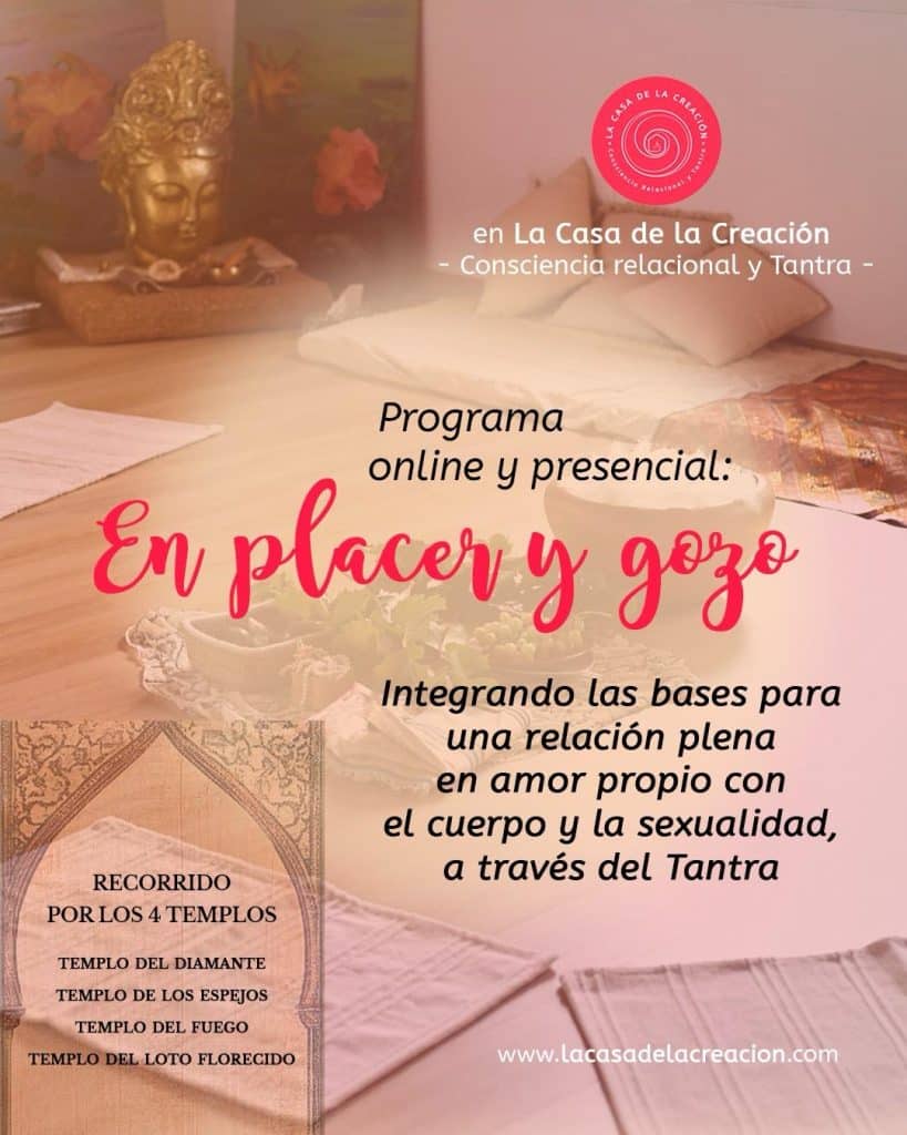 “En placer y gozo” es un programa presencial y online dedicado a sentar las bases para una relación con el cuerpo y la sexualidad, libre, plena y en amor propio a través del Tantra.